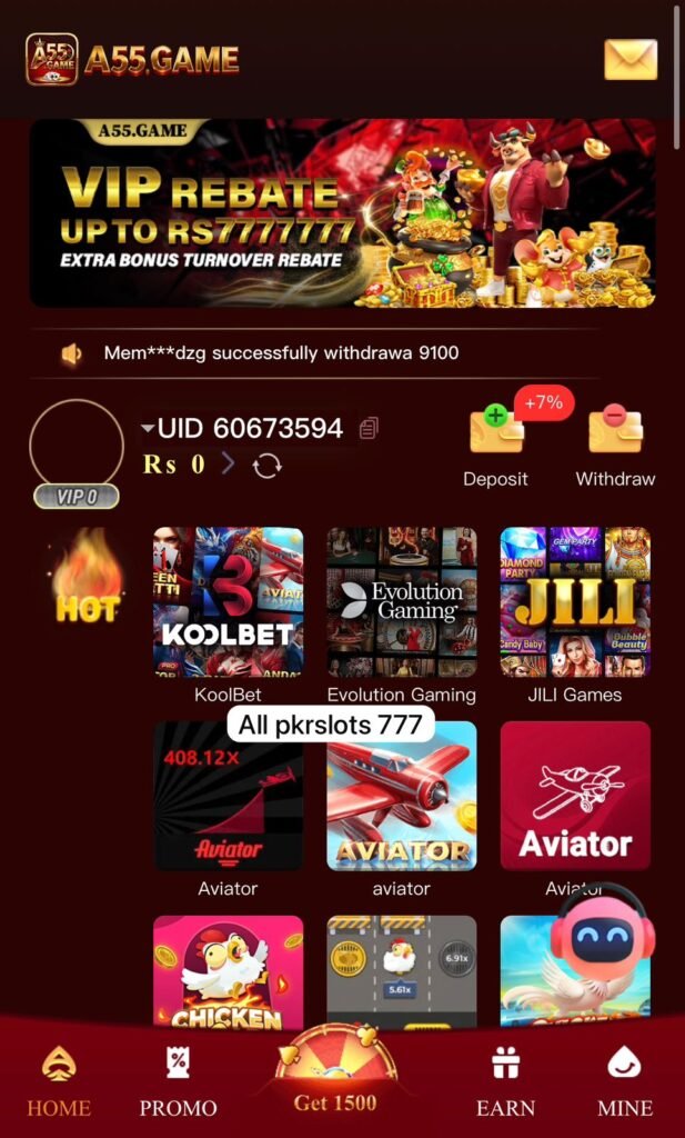 Download 55A Game today, start spinning, and experience the thrill of real money gaming only in Pakistan!