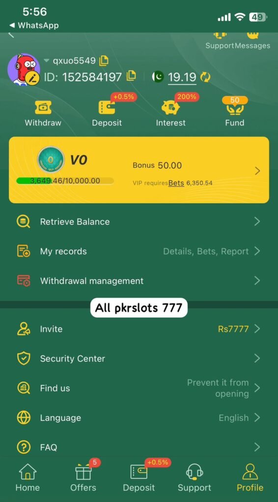 The app comes packed with special rewards such as welcome bonuses, daily login gifts, cashback offers, and referral income. It also follows legal guidelines and maintains a strict fair-play system, which is why players in Pakistan trust it for both entertainment and real-money gaming.