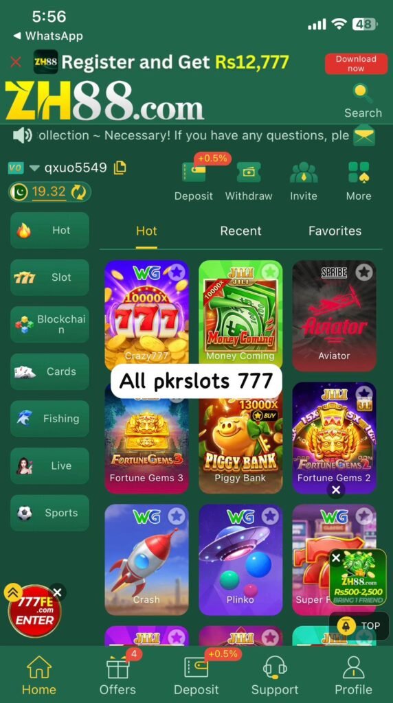 The 88ZH Game is one of Pakistan’s newest and most trending online casino apps. It offers players a complete gaming platform where they can enjoy slot machines, sports games, card games, and even modern blockchain-style games. The best part? You can earn real money while playing your favorite games.Also try this wc777 game