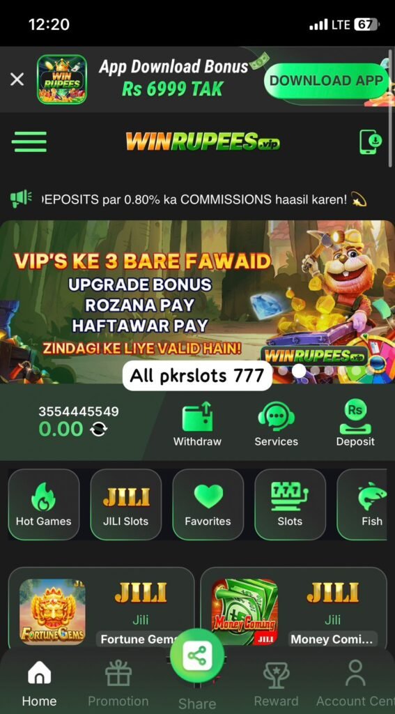 Win Rupees game is an online casino-style gaming app designed for Pakistani players. It offers games like Teen Patti, Slots, Lottery, Fishing, and more. The best part is that you can play with real money and also win real money, which can be withdrawn easily through JazzCash and Easypaisa.Also try this game 777sz game
