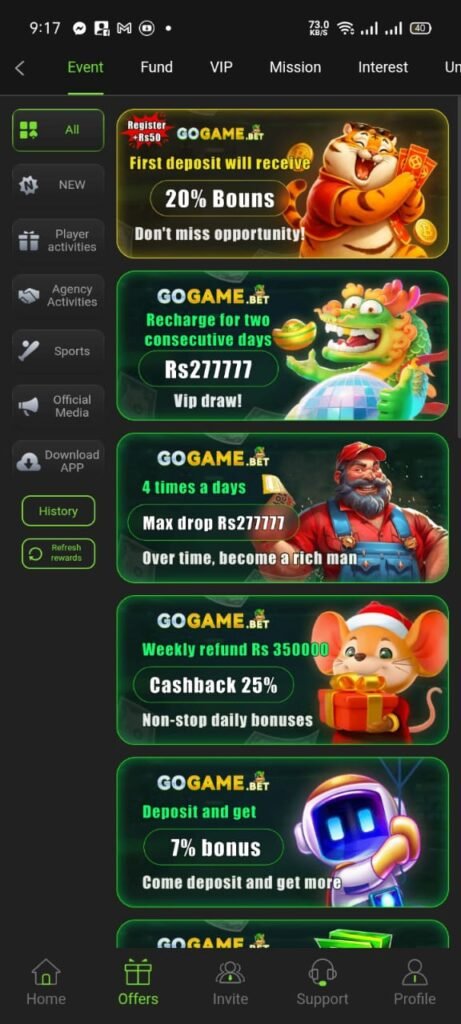 Players also like GoGame Bet because it offers quick deposits and withdrawals. You can use popular local payment methods like Easypaisa, JazzCash, or bank transfer to handle your money. Plus, the app gives daily bonuses, referral rewards, and free spins to help you earn even more.