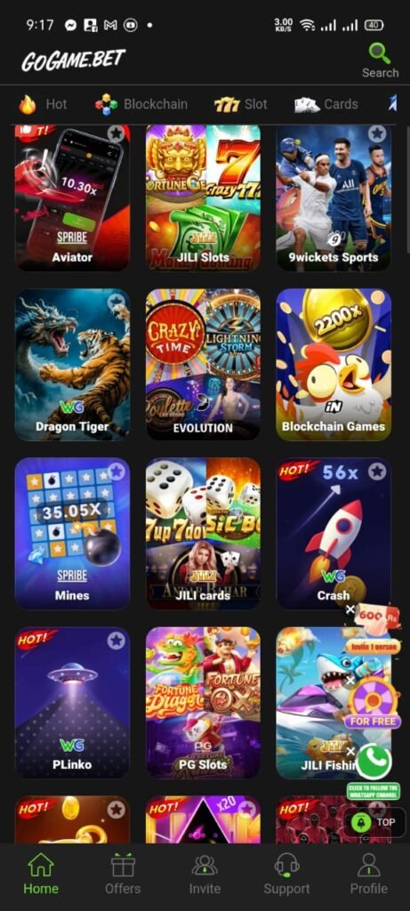 GoGame Bet has a clean design, making it very easy for users to move around the app. Even first-time users can find their favorite games without confusion.