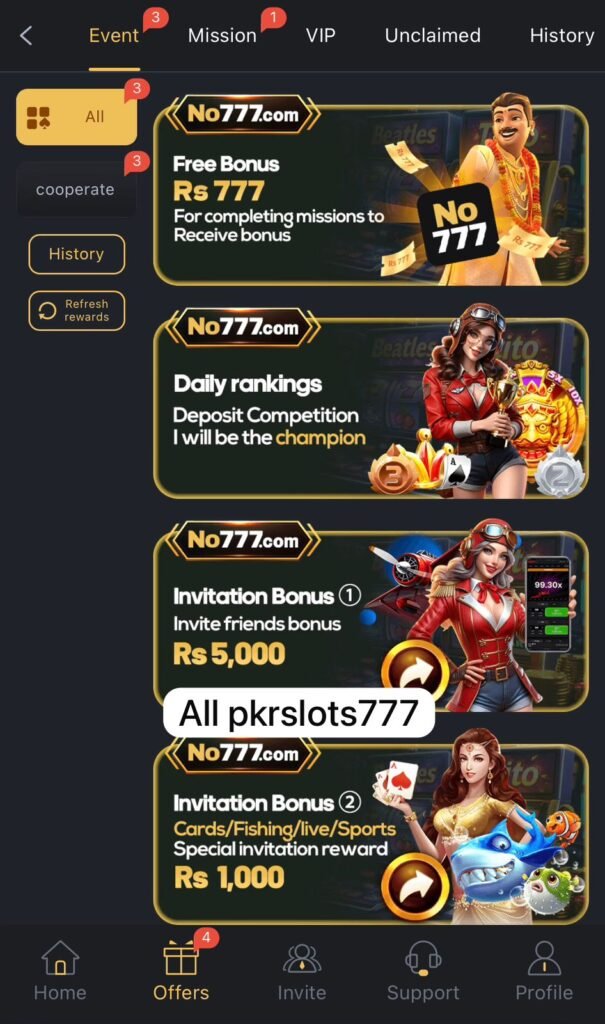NO777 encourages users to invite their friends and earn commissions. Each new player joining through your link adds extra earning potential. This system creates a passive income opportunity beyond just gameplay.
