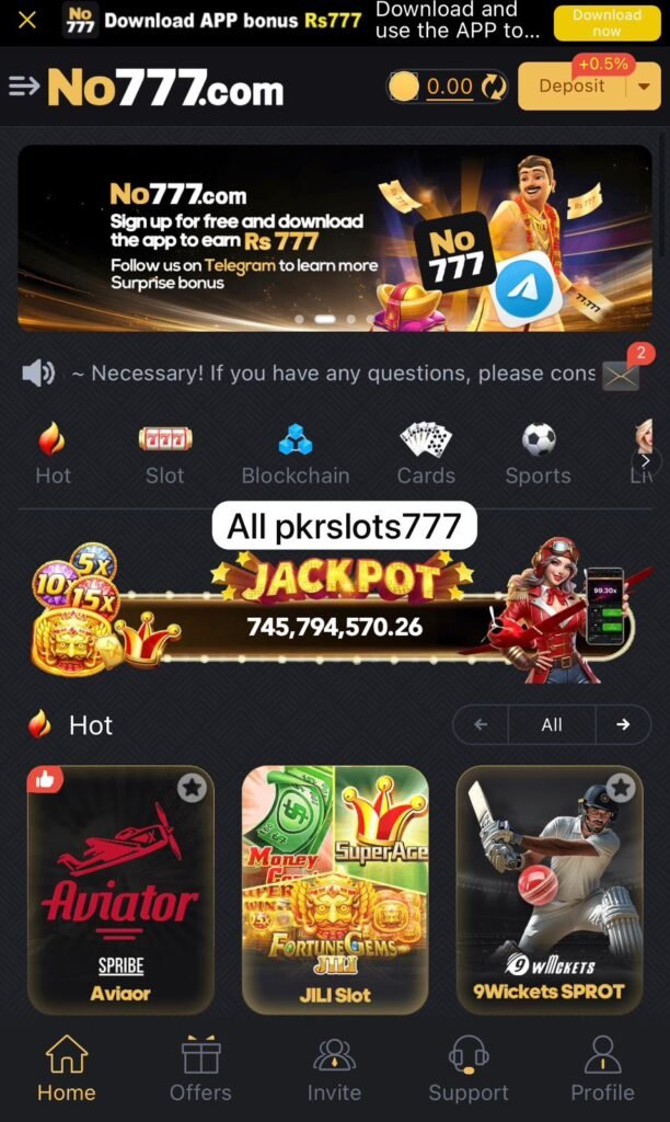 NO777 Game is a real-money online gaming platform popular among Pakistani users who enjoy luck-based games like slots, color prediction, and simple arcade-style betting games. It has quickly gained attention for its simple interface, smooth mobile experience, and direct cash withdrawal system using local payment methods like Easypaisa and JazzCash.